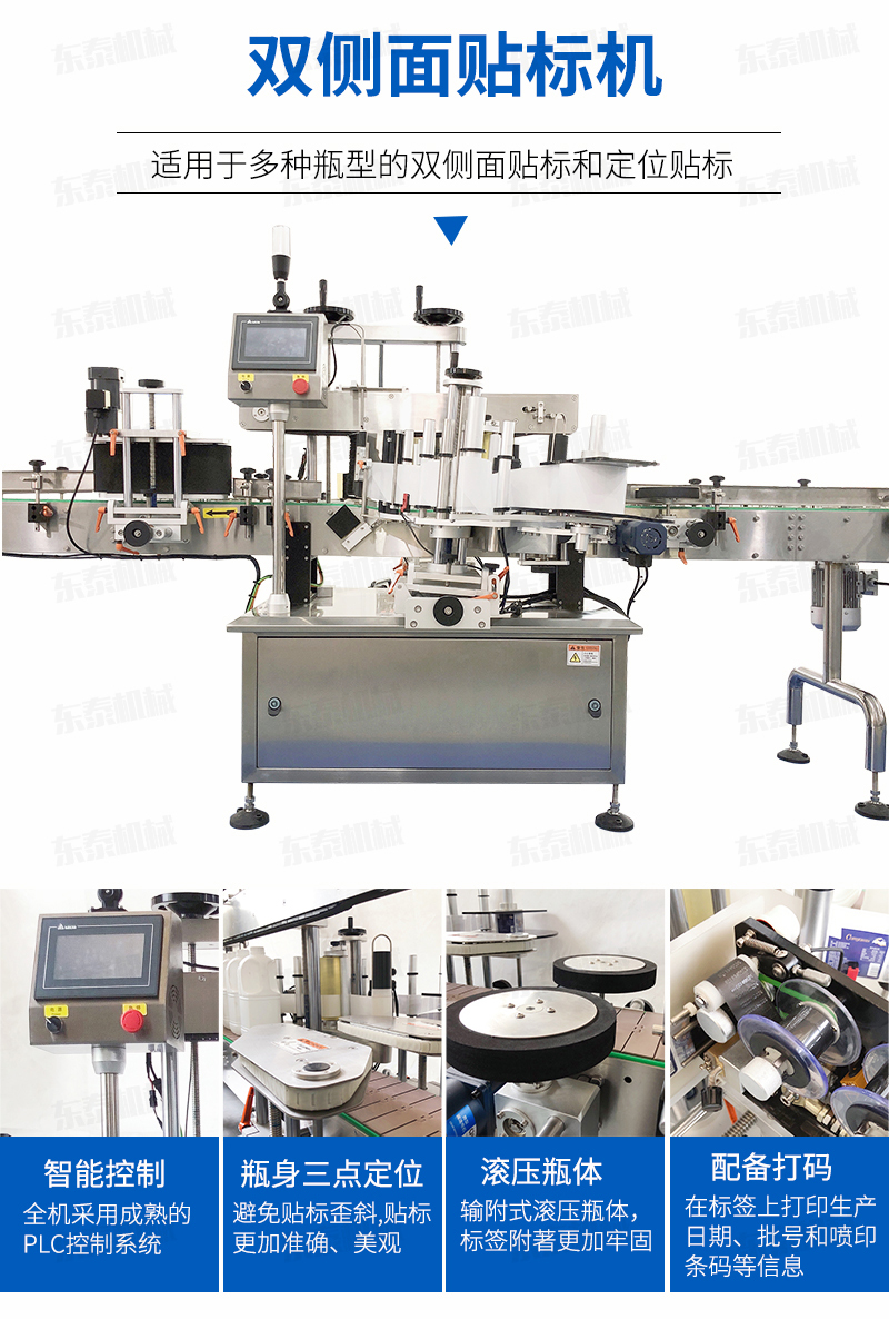 全機采用的技術,微電腦-PLC-電子光纖傳感器控制系統(tǒng),使整機運行穩(wěn)定、高速; 操作系統(tǒng)采用操作界面控制,操作簡便、實用、效率高,并有產(chǎn)量記數(shù)功能; 技術的速度快且穩(wěn)定; 適用范圍大,可用于各種尺寸的圓形瓶貼標; 輸附式滾壓瓶體,使標簽附著更加牢固; 前后段可選連線使用。