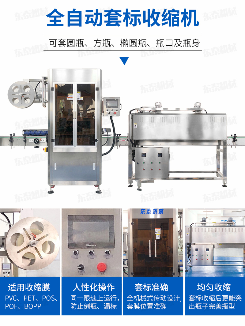 1. 本公司生產(chǎn)的套標機適用于各種瓶型的果汁、茶飲料、乳制品、純凈水、調味品、啤酒、運動飲料等食品飲料行業(yè)、不但套標位置度高,且收縮后更能突出瓶子完善瓶型。